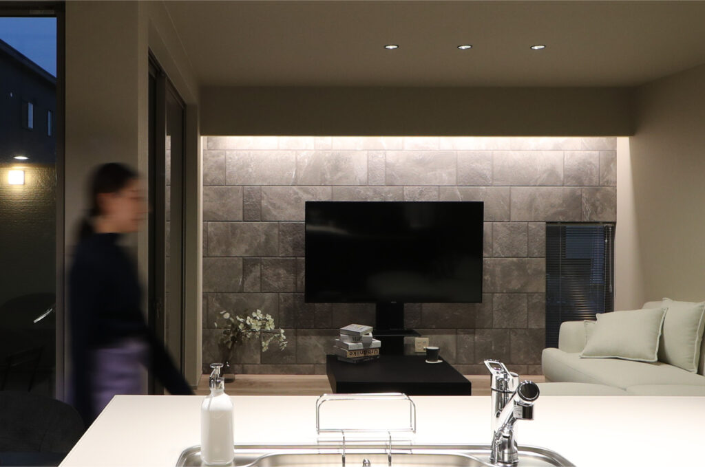 間接照明の柔らかい光、高級感のある家具などを設置し、ホテルの一室のような上質で高級感のある空間になっています。